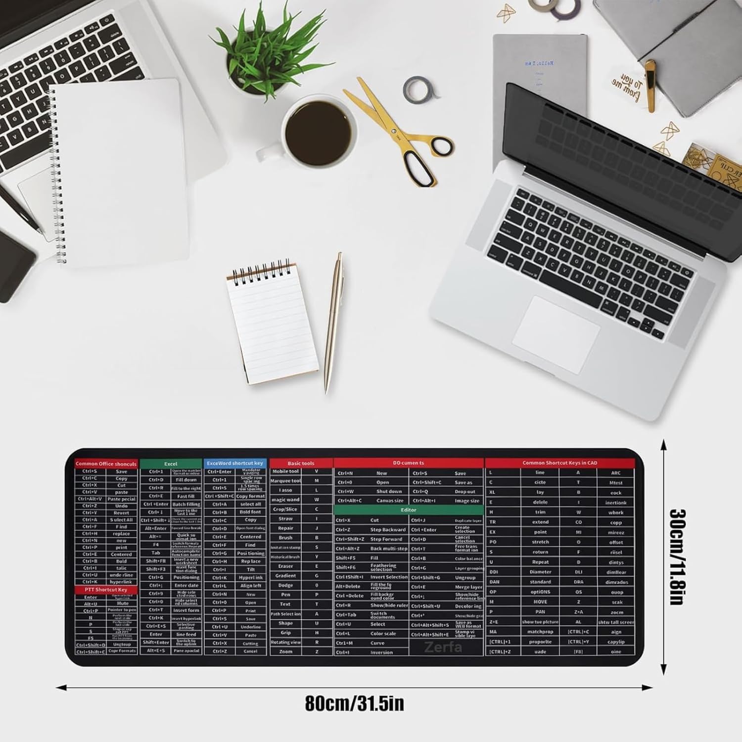 This Large Anti-slip Keyboard Pad has size of 800*300 mm, making it seamlessly transition between keyboard and mouse activities and It's the all-in-one solution for your workspace needs. This large size ensures that the shortcut key is easily readable.